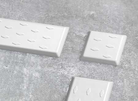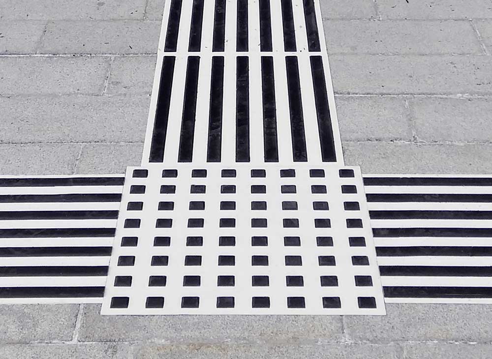 - Maße der Platte mit Streifen: 600 mm x 476 mm (7 Leitstreifen pro Platte)